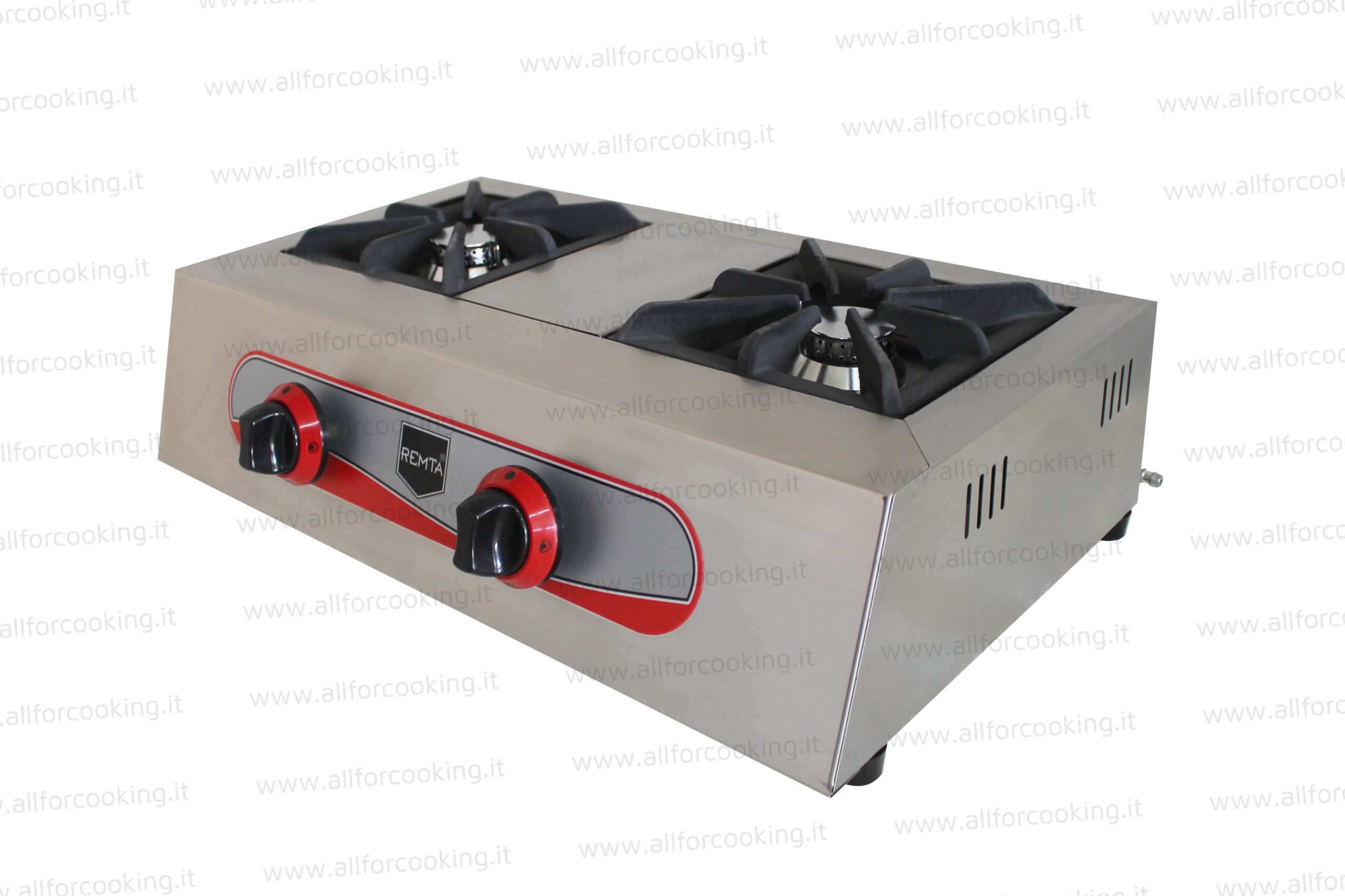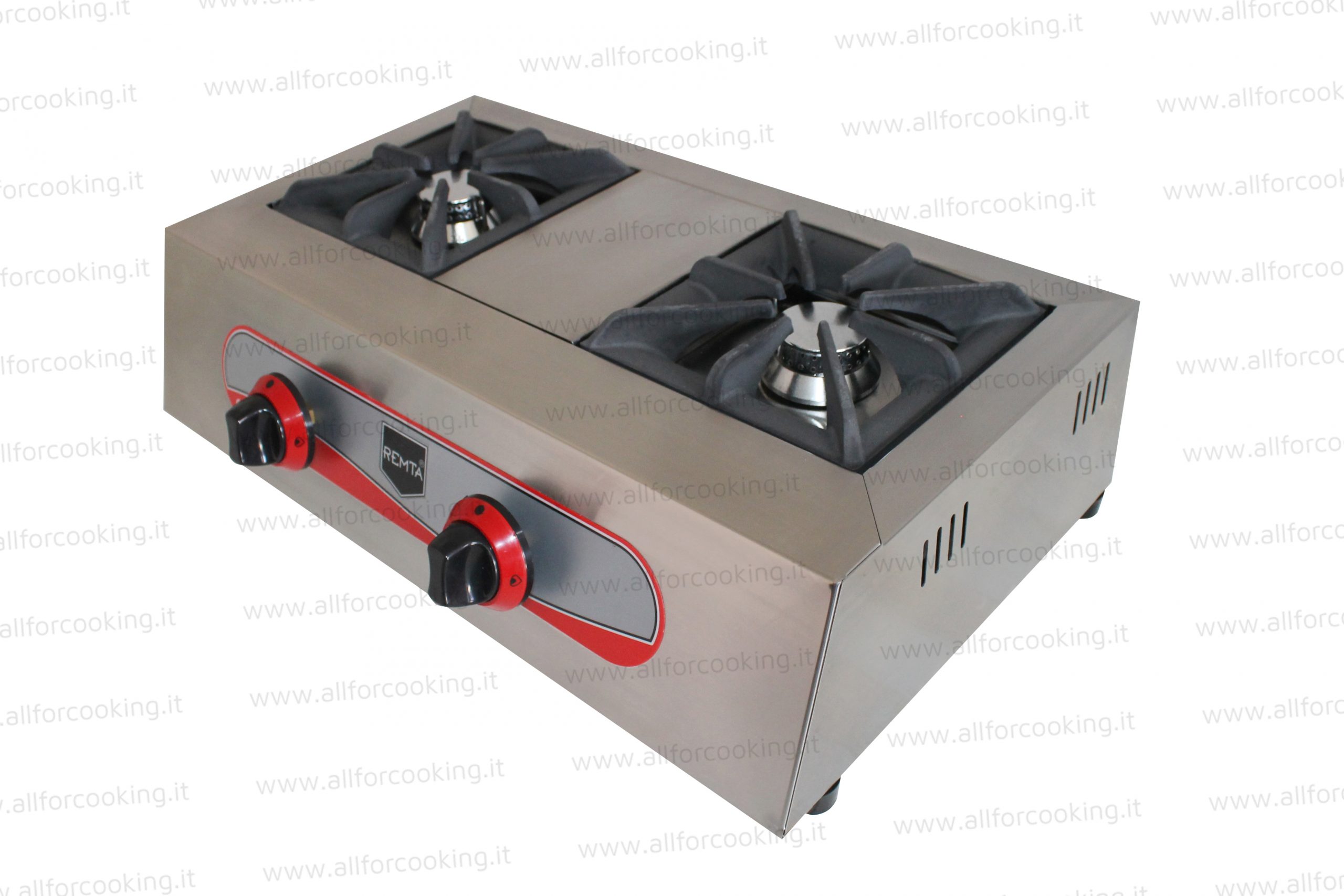 Dotata di 2 griglie poggia pentola singole in ghisa. L’intensità della fiamma è regolabile grazie alle manopole posizionate frontalmente. La distanza tra i bruciatori permette di utilizzare pentole di elevato diametro.